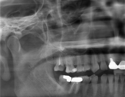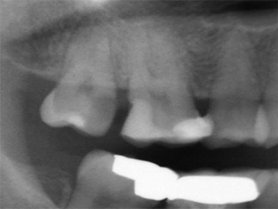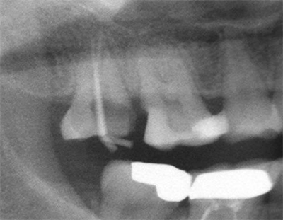 现病史:患者诉右侧后牙自发性放射痛2天,一年前曾充填治疗,数月前充填物脱落,故来诊。