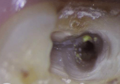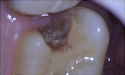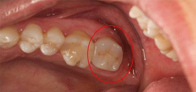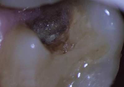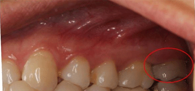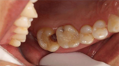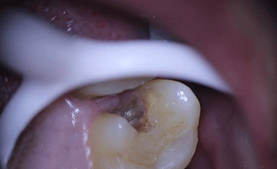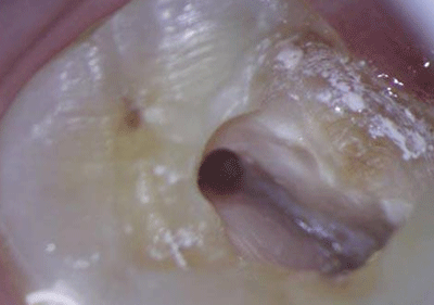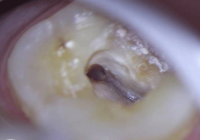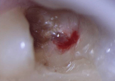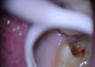 2:红色为出血点为牙髓组织(俗称牙神经),去腐未净时牙髓组织外露。